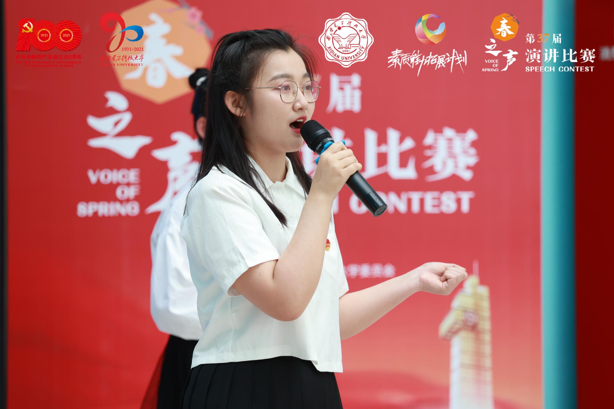 决赛场上,选手们精神饱满、声情并茂。他们借助幻灯片、历史影片等多种表现形式向现场评委与观众传递出新时代的青年之声。
