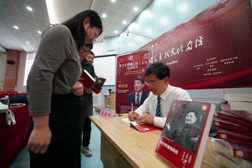 会上,薛庆超教授以赓续红色血脉,与共和国同行的西电校史作为开场,从文化定义的重新解读,坚定文化自信的时代意义,辩证看待中华传统文化,老一辈革命家对优秀传统文化的传承,习近平总书记关于优秀传统文化的重要论述等方面,深入浅出地阐述了中国特色社会主义文化的内涵和外延,号召全体师生进一步传承和发扬中华优秀传统文化。薛庆超教授谈到,中华民族源远流长,悠久历史孕育出的宝贵精神品格,积淀形成了有利于中华民族发展,有利于中华民族团结,在人类文明历史上具有重要地位的中华优秀传统文化。在漫长的革命历程中,老一辈革命家充分运用中华优秀传统文化的精髓,实事求是开展政治斗争,德才兼备选拔任用干部,引经据典指导武装革命,取得了新民主主义革命的胜利。在社会主义建设中,中央领导集体充分运用中华优秀传统文化精髓,求同存异提出和平共处五项原则,坚持“小康”发展中国式现代化,肝胆相照促进各民族团结共进,带领中华民族逐渐走向繁荣富强。建党百年,中华传统文化已经成为了华夏儿女的基因,中华民族的血脉。如今,正处于走向新时代、开启新征程的重要历史节点,全体师生要充分运用马克思主义的观点。方法,科学对待中华传统文化,大力弘扬以爱国主义为核心的民族精神和以改革创新为核心的时代精神,坚持中国特色社会主义文化自信,为实现中华民族伟大复兴而奋斗。