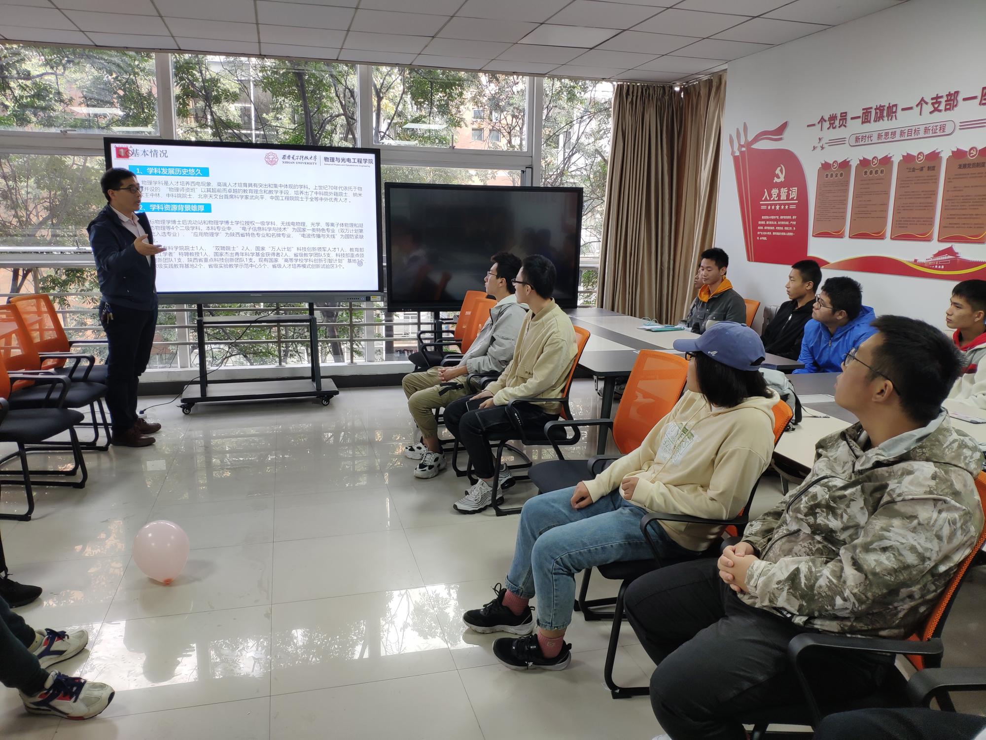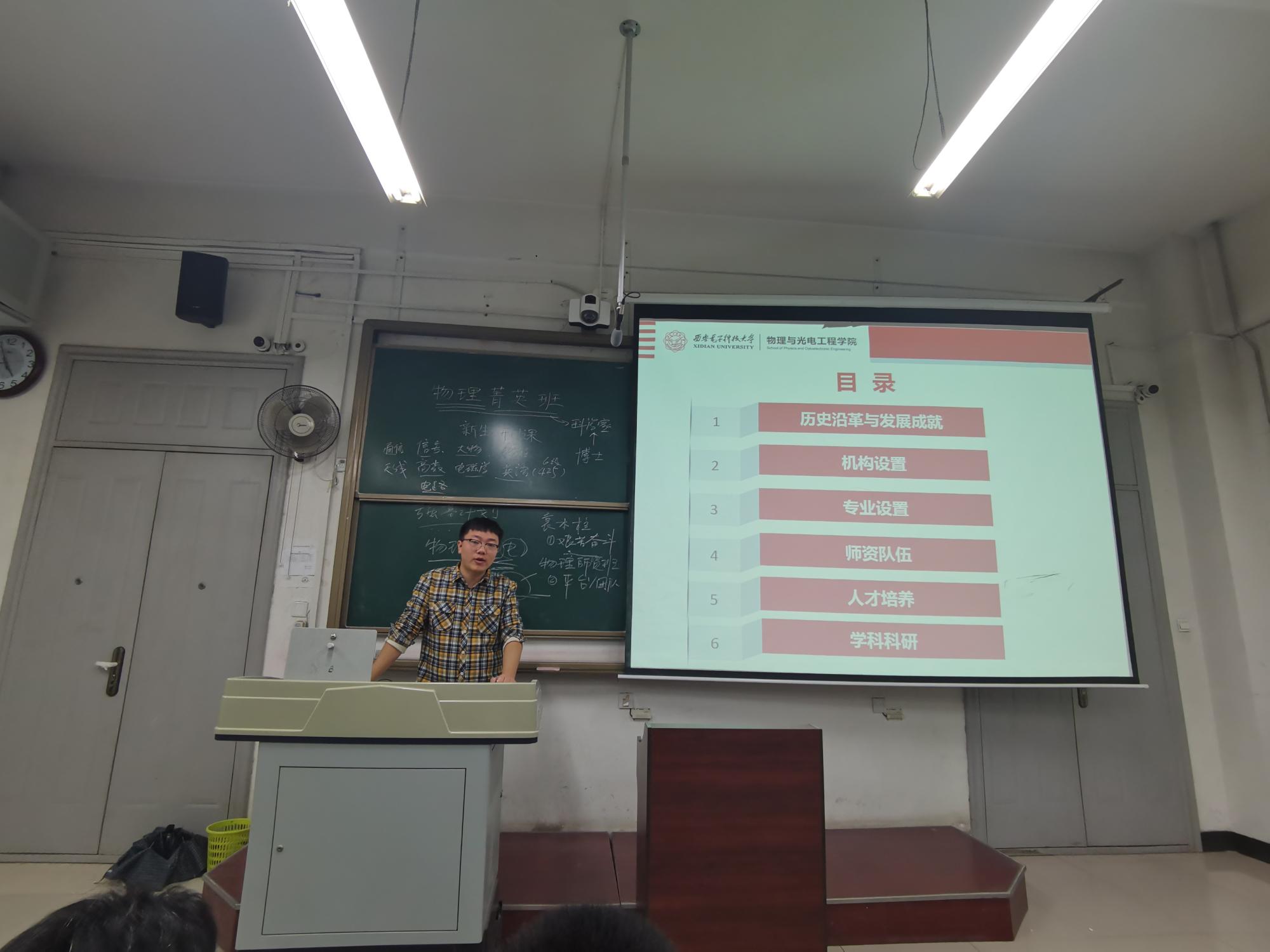 10月15日下午,PA视讯2020级新生辅导员袁本柱在A楼220教室为物理菁英班全体同学带来了一场别开生面的新生研讨课。课堂由物理团队班的故事展开,他在课上说到,发扬“艰苦奋斗”的西电精神是学好基础学科的必要条件,肯吃苦,多钻研才能悟出物理的乐趣。同学们纷纷表示将潜心学习,重现辉煌。最后,课程在轻松愉快的氛围中圆满结束。