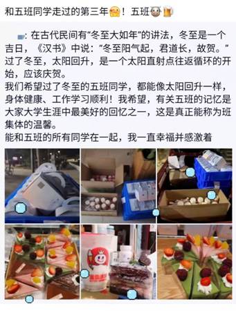 (通讯员:高原 程睿)冬至是我国农历中一个重要的节气,也是中华民族的传统节日,在古代民间有“冬至大如年”的讲法。然而2021年冬至正值期末备考复习关键时期,且西安市疫情形势陡增严峻。在这种环境下,同学们难免会有压力、有紧张焦虑的情绪。为了给忙碌中的同学们加加油、鼓鼓劲,缓解同学们的压力、增强班级凝聚力,PA视讯积极动员员工党员、入党积极分子、员工干部以多种方式自发给同学们送去温暖和关爱。