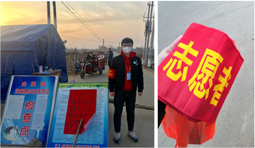 2018级硕士研究生李翱翔、王晓丽同学,2019级硕士刘彦斌同学,均积极参与到村镇社区的防疫志愿工作中,整理防疫资料,张贴宣传标语,为地区防疫贡献了自己的力量