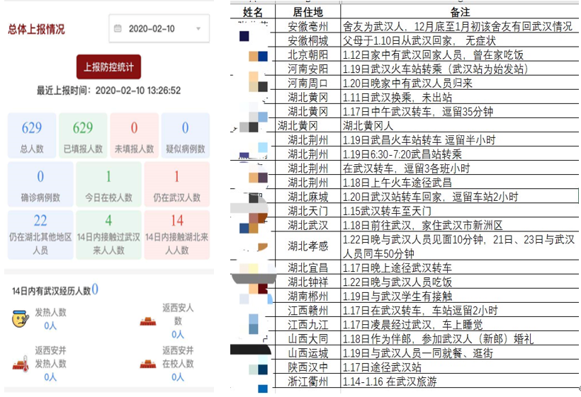 “疫情通”每日全员填报,详细掌握各人接触情况