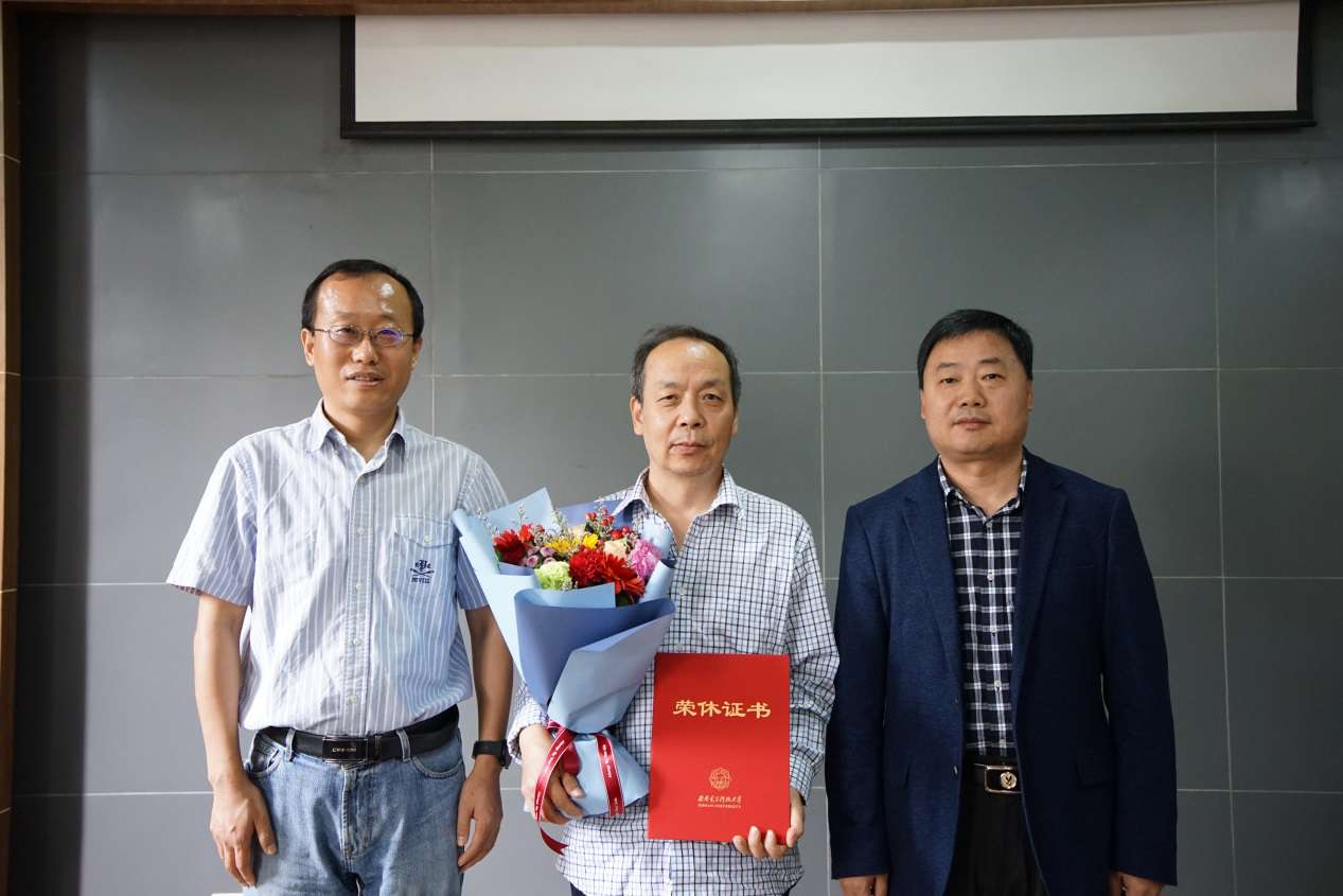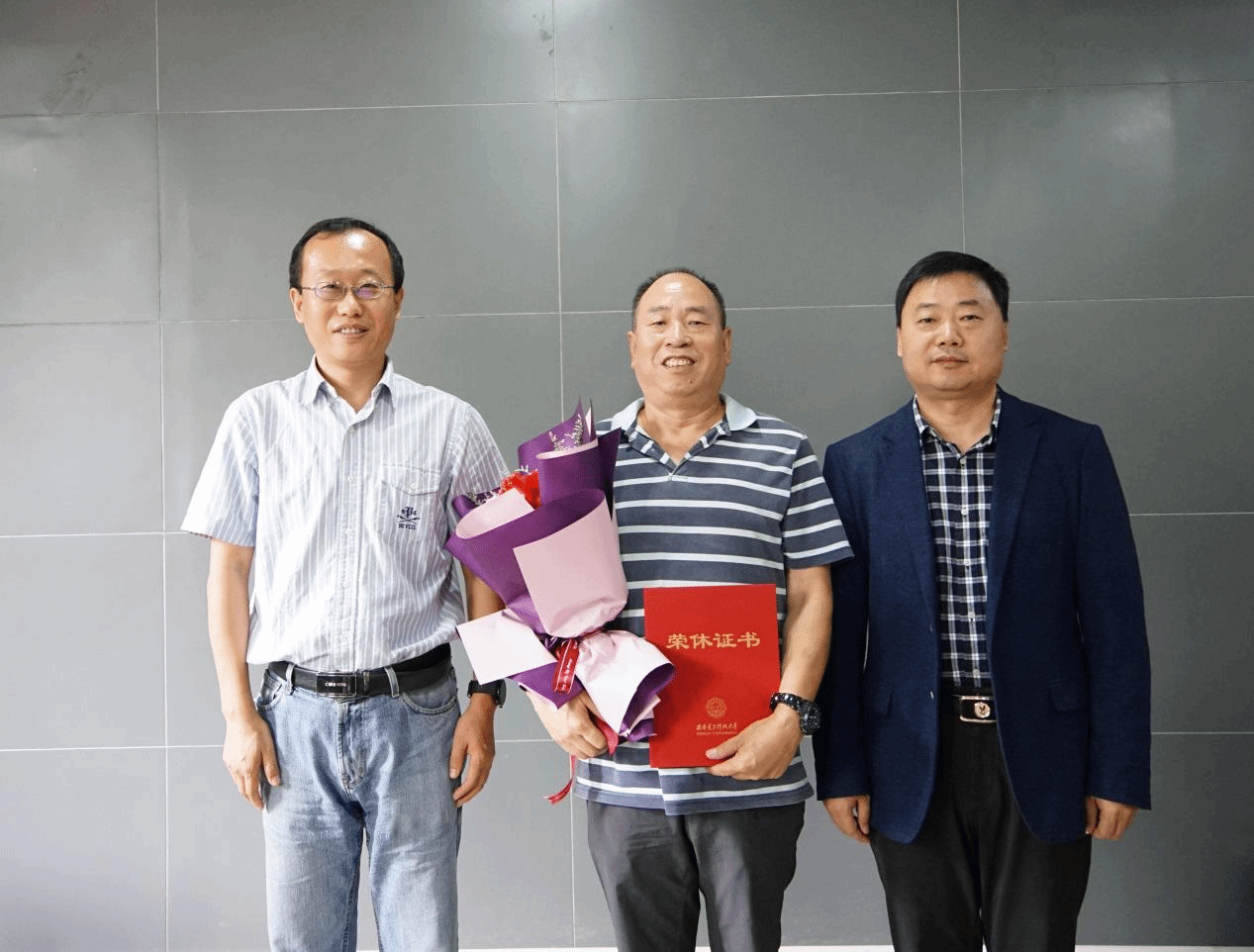 会后,独国社和邵晓鹏为公司五名退休教职工颁发了荣休证书并合影留念。