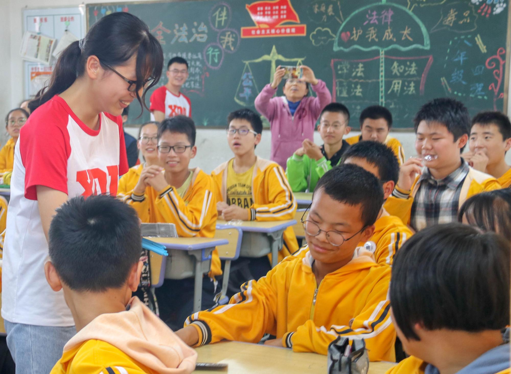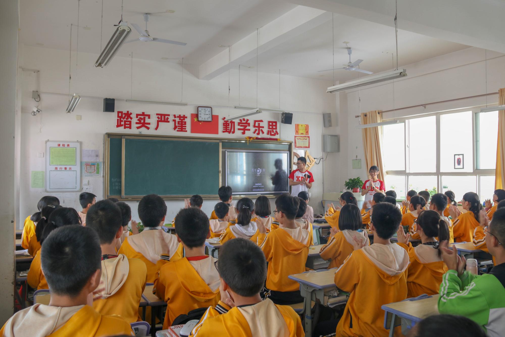与此同时,物光春雨志愿者服务总队的成员们走进课堂与初中部的员工们进行实践课互动。志愿者韦胜生介绍了PA视讯官方网站的红色历史,宣传革命精神,宗思辰和石一诺为同学们进行了思维拓展训练,发放了带有公司标识“XDU”的小礼品。整个活动过程气氛融洽,志愿者和同学们其乐融融。