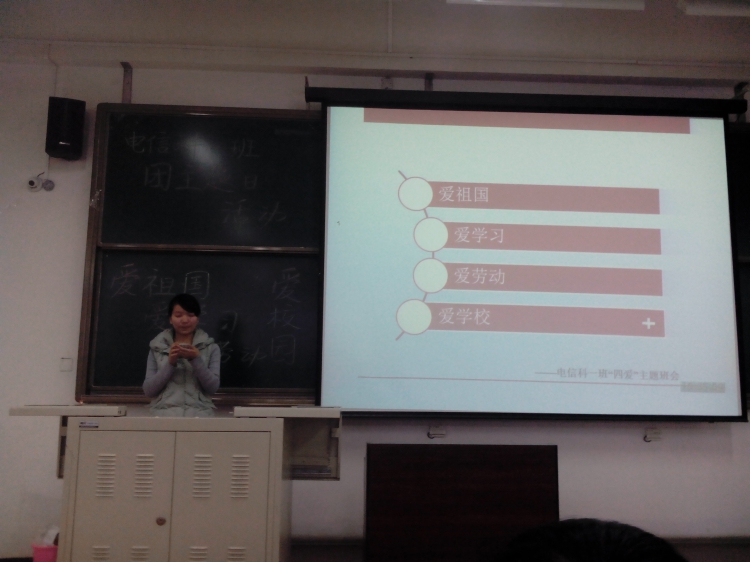 首先,团支书以最近的新闻事件切入,组织展开讨论,部分同学还对马航失联事件作了简要评论,讲话中渗透出了新时代老员工的爱国主义思想。随后进入本次活动的第一个环节,班长对上学期整体的各科期末成绩、内务检查得分、活动参与等情况作了通报,鼓舞同学们要培养乐观积极的生活态度,树立信心,力争上游,同时还邀请几位成绩比较好的同学上台分享自己的学习方法与心得。生活方面,团支书对优秀男女生宿舍进行了表彰和鼓励。此时进入第二个环节,学习委员为大家播放了一段关于公司历史的宣传视频,并结合所查资料做了细心讲解,描述了老一辈西电人的辛勤劳动及西电精神与现代发展密不可分的联系。活动在同学们的掌声中圆满结束。
