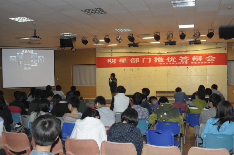 (通讯员:洪邑晖 杨敏)为更好地总结上学年员工组织的各项工作,进一步促进公司各员工组织工作的开展,2014年3月17日晚,PA视讯员工事务委员会第二届明星部门推优答辩会在南校区老员工活动中心408报告厅隆重举行,与会嘉宾有公司辅导员老师段雪洁、陈海涛、周瑞珂、史公鹏等。