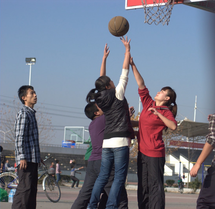 上午9时,同学们在篮球场等待抽签分组,比赛采用三男加一女模式,上半场男女生均上场,只有女生得分有效,下半场女生下场,其余男生继续比赛。上半场比赛中男生抢篮板传球给女生,女生专注投篮,比赛过程中大家都严格遵守比赛规则。在轻松愉快的气氛中上半场比赛结束了,迎来了紧张刺激的下半场比赛。球员们在半场内拼劲十足,进攻防守都没有丝毫放松,精彩的运球,三分的投篮,赢得大家的阵阵欢呼,旁观的同学更有人发出尖叫。两个小时之后,第一轮比赛结果揭晓,读书社,素拓部,组织部,志愿者队进入四分之一决赛,办公室进入半决赛。