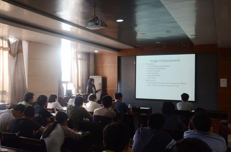 报告会上,王谨首先从图像的定义出发,介绍了图像增强、图像重建、图像理解及图像编码的相关技术内容。随后就数字图像的获取、变换、增强、压缩编码、识别等技术以及视觉信息在数字新媒体中占据的重要地位进行了深入的阐述。最后,她结合在韩国的学习经历,分享了自己的对图像压缩技术以及彩色图像Bayer格式图像色彩恢复相关研究的心得与认识。