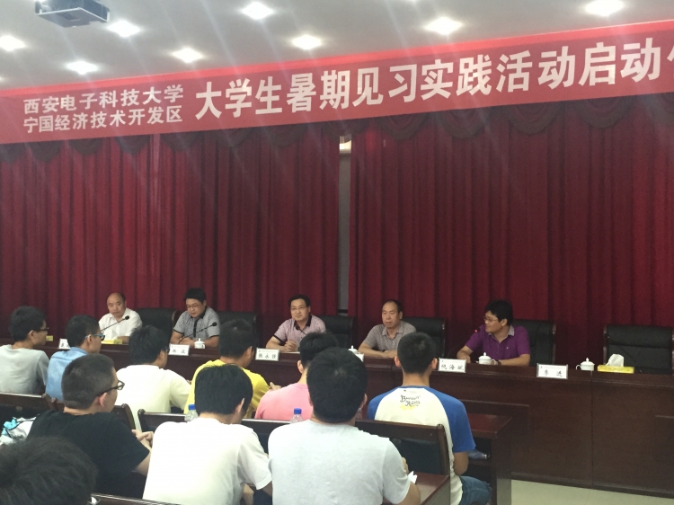 “西安电子电子科技大学—宁国经济技术开发区老员工校外实践教育基地”揭牌仪式于暑期在宁国经济技术开发区管委会隆重举行。宁国市副市长、开发区管委会主任张永强,PA视讯副经理李平舟,党委副书记林波,开发区党政办、经发局负责人及首批参加暑期生产实习的100余名员工参加仪式。