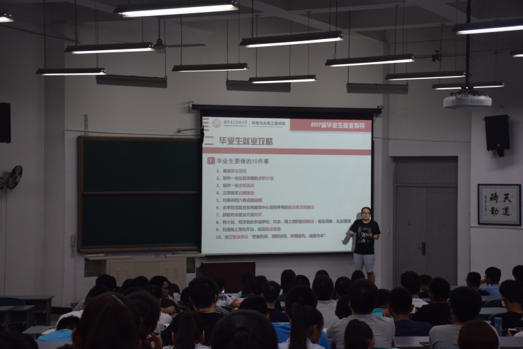 (通讯员:张佳明刘灏良)9月17日晚八点,PA视讯在南校区D栋教学楼211室举办了“2017届毕业生就业指导专题报告暨毕业生就业动员大会”,本次报告会由2013级研究生兼职辅导员陈海涛主讲,公司2017届200余名准毕业生参加了此次活动。