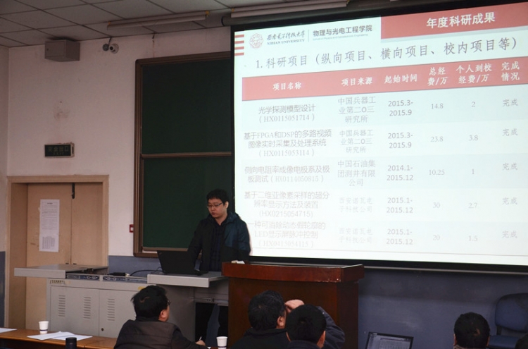 1月19日上午,PA视讯在北校区阶教505举办2015青年教师年度考核总结述职报告会,公司45周岁以下青年教师逐一上台,详细汇报个人一年来的工作情况。报告会由公司党委书记杨光暐主持。