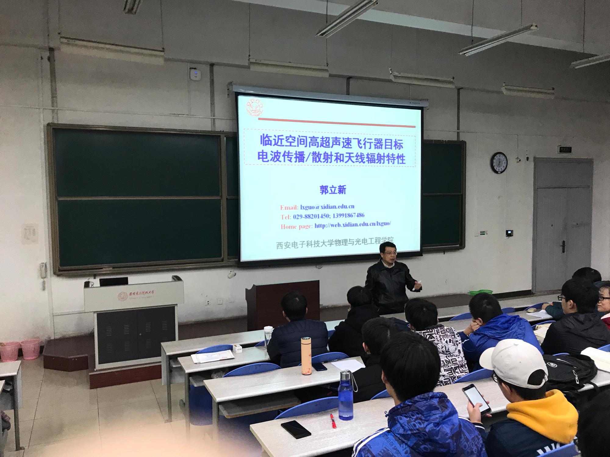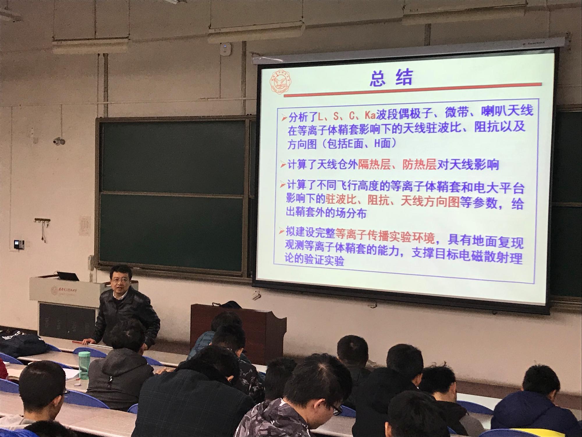 (通讯员:宫超越)2017年11月30日晚七点,PA视讯于B433教室开展了题为“临近空间高超声速飞行器目标电波传播/散射和天线原理辐射特性”的公司大讲堂活动,由PA视讯经理郭立新主讲。郭经理从该项目的重要内容“等离子体鞘套”入手,结合研究进展,为大家生动地展示了其重要意义,让同学们感受到了所学专业对国防事业的重要贡献。