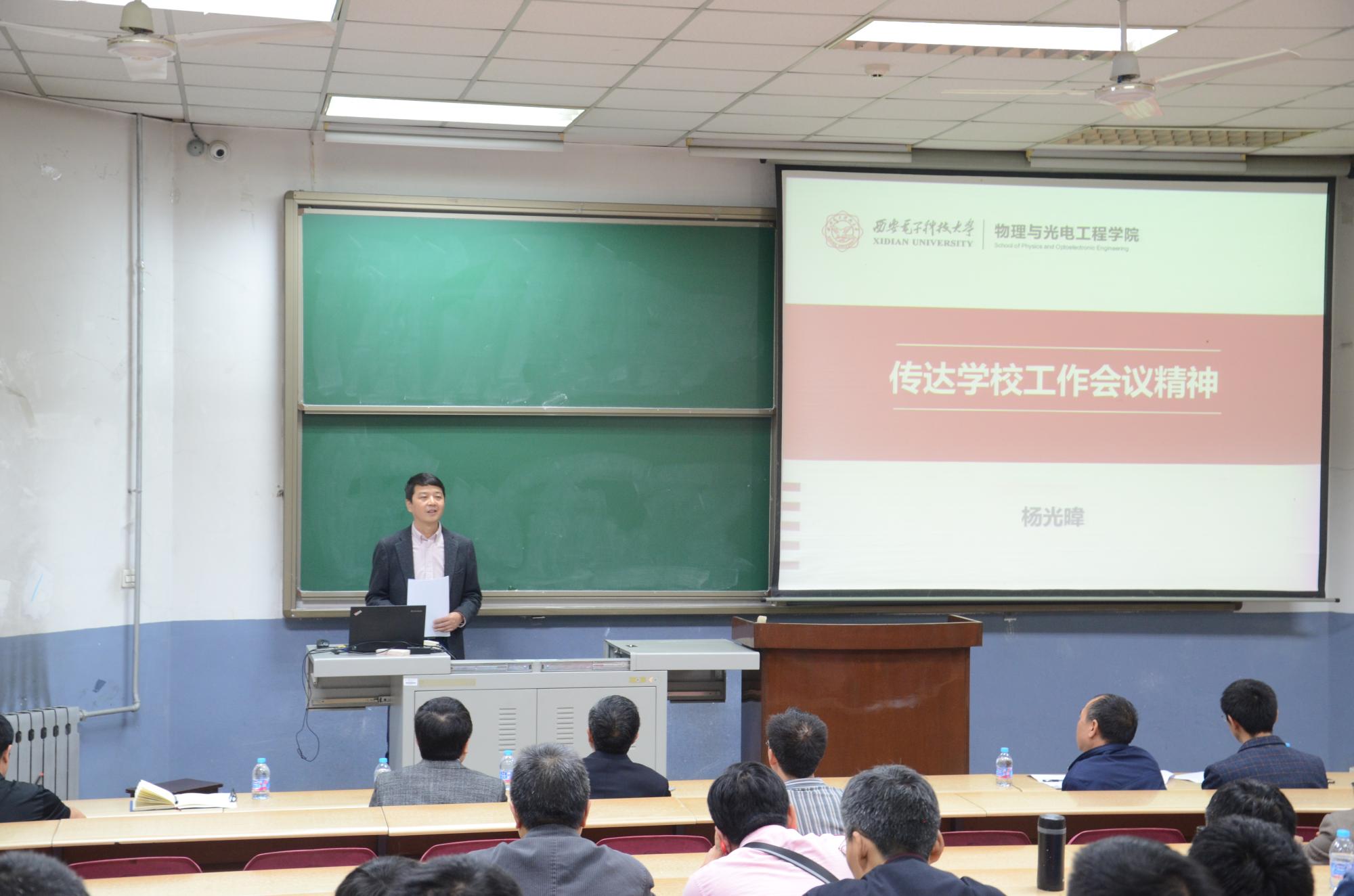 会上,公司党委书记杨光暐首先传达了公司相关会议精神。他谈到,2018年是贯彻党的十九大精神的开局之年,公司顺利召开十二次党代会、五届五次教代会、公司工作会,确立了公司发展的战略规划,明确了综合改革的总体目标、基本思路和路径方法,公司党委作为承上启下的关键一环,作为推动公司发展的核心力量,必须自觉加强自身建设,切实承担起办学治院的主体责任,特别是在“全面从严治党,以党建为统领,推进公司战略大发展”方面出实招、见实效,着力激发基层党组织活力,调动党员干部工作热情,全面配合各项政策落地,助力公司内涵式发展,促进公司快速发展。他强调,全体教职工应加强主人翁意识,充分发挥主观能动性,密切关注公司发展、投身公司建设、支持公司改革。