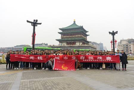 (通讯员:仵梦童)挑战自我,助力彩协,放飞希望。为响应习近平总书记在“十九大”中提出对“2020全面脱贫”的要求,同时锻炼老员工生存能力,提高他们的社会适应性,11月12日,由共青团PA视讯委员会承办的“一元钱城市生存挑战赛”在西安市钟楼商业区正式拉开帷幕。通过本次活动,将筹集的资金部分捐赠给“彩云协会”,用于为云南省昭通市镇雄县常院小学的员工购置书架等学习用品,为山区脱贫贡献一份力量。本次活动有来自各公司的14支队伍共56名员工参加比赛。参赛的所有同学用仅有的一元钱,与工作人员们一起从钟楼出发,走向社会,切实地感受来自生活中方方面面的挑战。