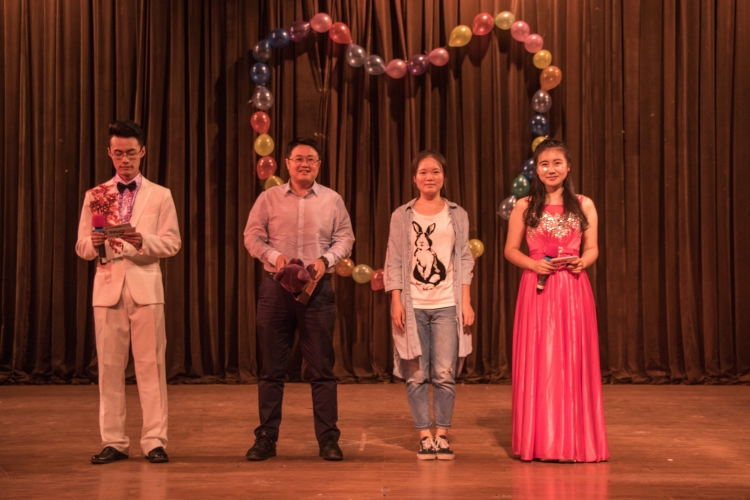 欣赏完节目后,我们又颁发了巾帼不让须眉奖,这个奖项颁发给了杨黎雪、赖蜜、王雨农,也志在表彰对那些身材娇小但意志坚强、在运动会中表现突出的女生们。随后颁发的是团体进步奖,各班班长代表班级上台接受了史公鹏老师的颁奖,各项目负责人——员工会王柯捡、员工会杨宗儒、员工会刘米良、团委毕力格、团委张书玉、团委程嘉偌、团委米元超、学事委杨雪莹、学事委贺建鹏、科协唐思思、足球队姜嵩、田径队王昊天也上台接受了靳振华老师的颁奖。随后,我们进行了有趣的游戏——抢板凳,轻松愉悦的氛围,让大家再次感受到了在物光院这个大家庭的乐趣。