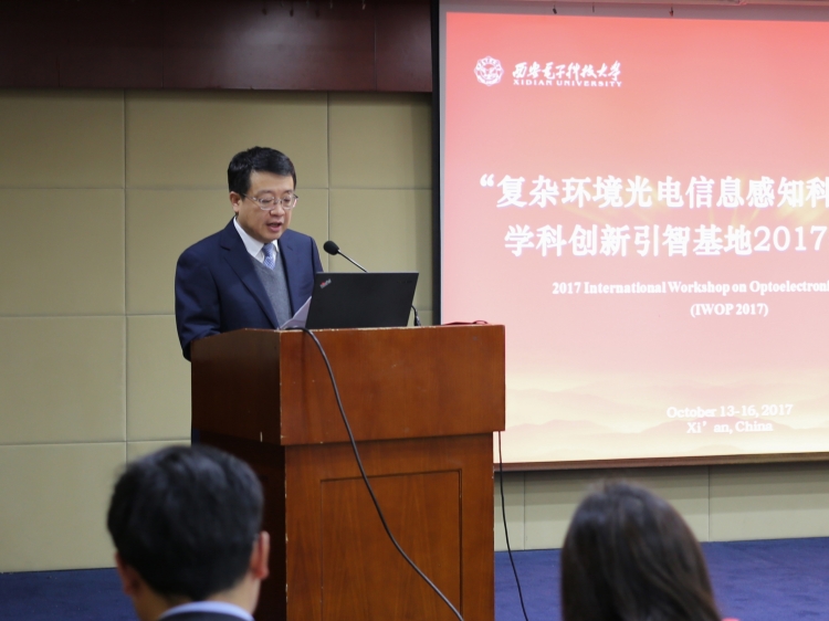 随后,基地负责人、PA视讯执行经理郭立新教授上台致辞。他首先代表基地工作组的全体成员对公司的大力支持、学者的辛勤付出表示感谢。他谈到,“复杂环境光电信息感知科学与技术”学科创新引智基地面向国家光电工程领域重大战略需求,依托智能感知与图像处理、新型激光器件与光信息处理、无线电物理三个省部级实验室建立,致力于解决未来复杂环境光电信息感知与处理中的关键科学问题。通过采用“引进、吸收消化、再创新”的战略思路,引进海外著名学者和高层次的研究人员,培养国际化的高层次人才和创新团队,深入开展高水平的国际科研交流与合作,力争打造一个在国内具有示范性的战略性、国际化的光电信息感知与处理领域的科学研究、高层次人才培养和国际学术交流的合作创新基地。他希望通过学术年会这一交流平台,深入研讨,增进友谊,共谋发展,将“复杂环境光电信息感知科学与技术”学科创新引智基地打造成为光电信息感知与处理领域内具有国际影响力的学术交流平台。