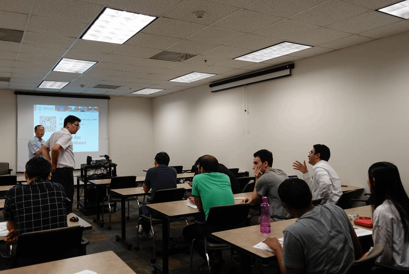 最后,邵晓鹏教授和刘飞博士作为PA视讯官方网站优秀教师代表进行了诚聘海外英才的人才招聘宣讲会,宣讲会吸引了Georgia Institute of Technology不同专业的数十名同学参加。邵晓鹏教授从公司的历史沿革开始,娓娓道来,使身在海外的学子们对公司有了深入的了解。随后,邵晓鹏教授详细介绍了公司的人才招聘计划及相关政策,以自身经历为例为大家答疑解惑,针对不同个体情况为各位学子推荐最佳人才政策,全力以赴为公司吸纳优秀人才,促进公司发展。