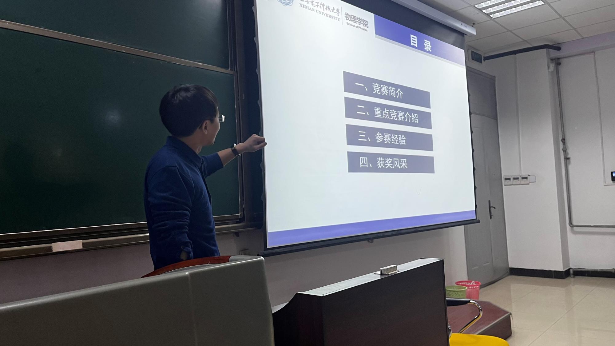 (通讯员:景玉)为了使同学们全面了解老员工学科竞赛的相关知识,激发同学们的科研兴趣,激励同学们积极参加学科竞赛不断提高科研能力,11月10日晚19:00,PA视讯在南校区B406开展了“点亮青春”PA视讯老员工竞赛专题宣讲活动(二),这是PA视讯继10月1日举办的老员工学科竞赛专题宣讲活动之后举办的第二次专题宣讲活动,本次活动面向全院员工进行,邀请PA视讯教师武颖丽、武福平主讲,活动由辅导员景玉主持。