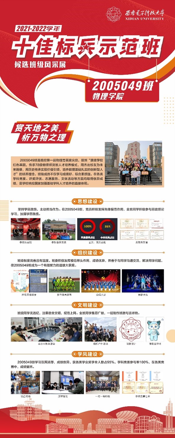 “十佳标兵示范班”是PA视讯官方网站校级班集体最高荣誉称号。来自各个公司的19个“先进班集体”候选班级竞逐这一荣誉称号,其中公司的2020级物理菁英拔尖班——2005049班经过材料审核,视频展示,辅导员助力,答辩等环节,最终脱颖而出,以均分93分位列第二,荣获2021-2022学年“十佳标兵示范班”荣誉称号。值得注意的是,在上场答辩时PPT播放设备突发故障,答辩人闫佳艺临危不惧,凭借着充足的准备以及内心的从容自信,最终全程脱稿有条不紊地完成精彩答辩,得到了现场评委们的一致认可。