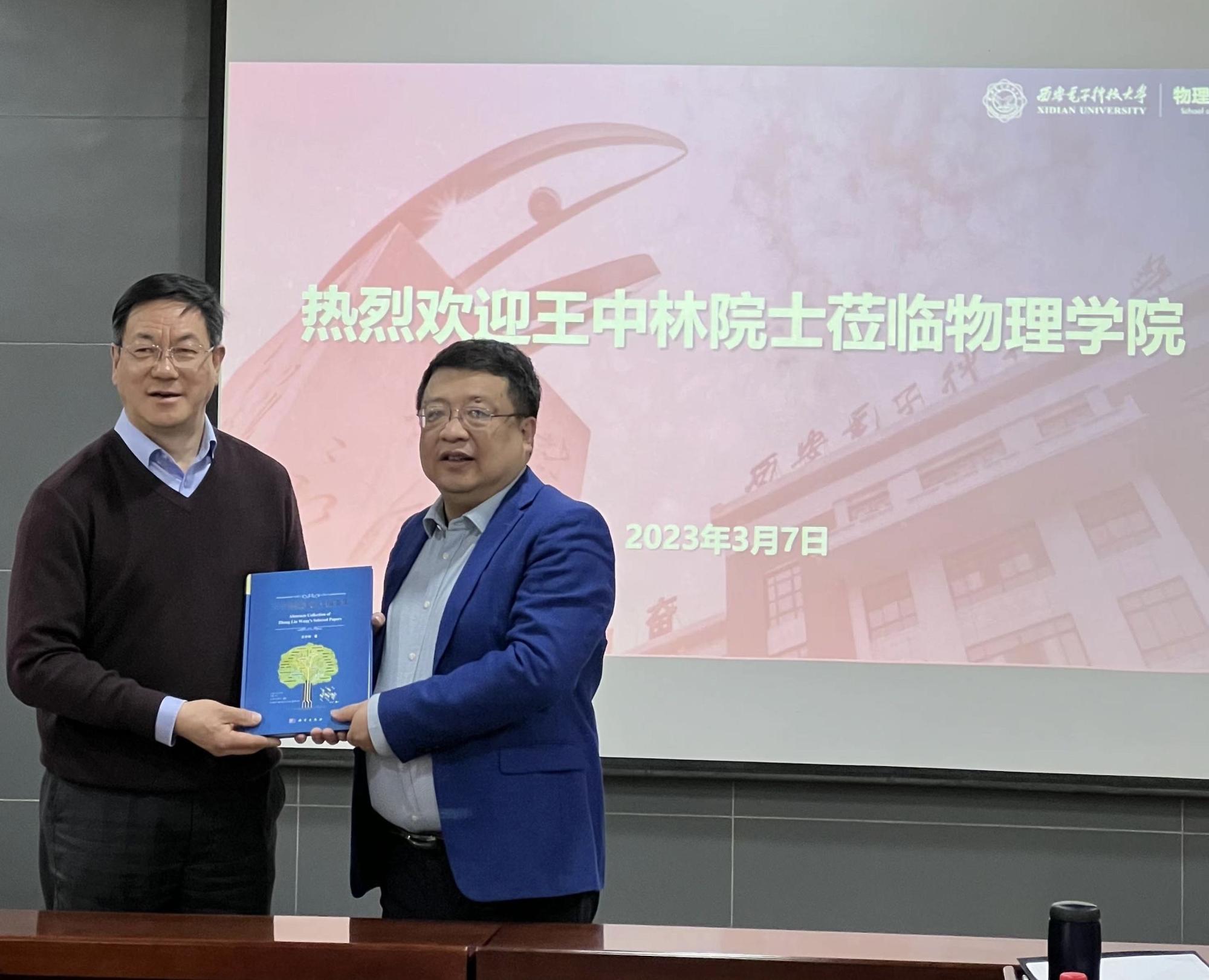王中林院士带着对母校的浓浓情怀,追忆了西电老一辈物理学家的认真专注、一丝不苟的治学精神,并向PA视讯赠送《王中林精选论文摘要集》,他深情祝愿朝气蓬勃的PA视讯能够越办越好、长足发展。