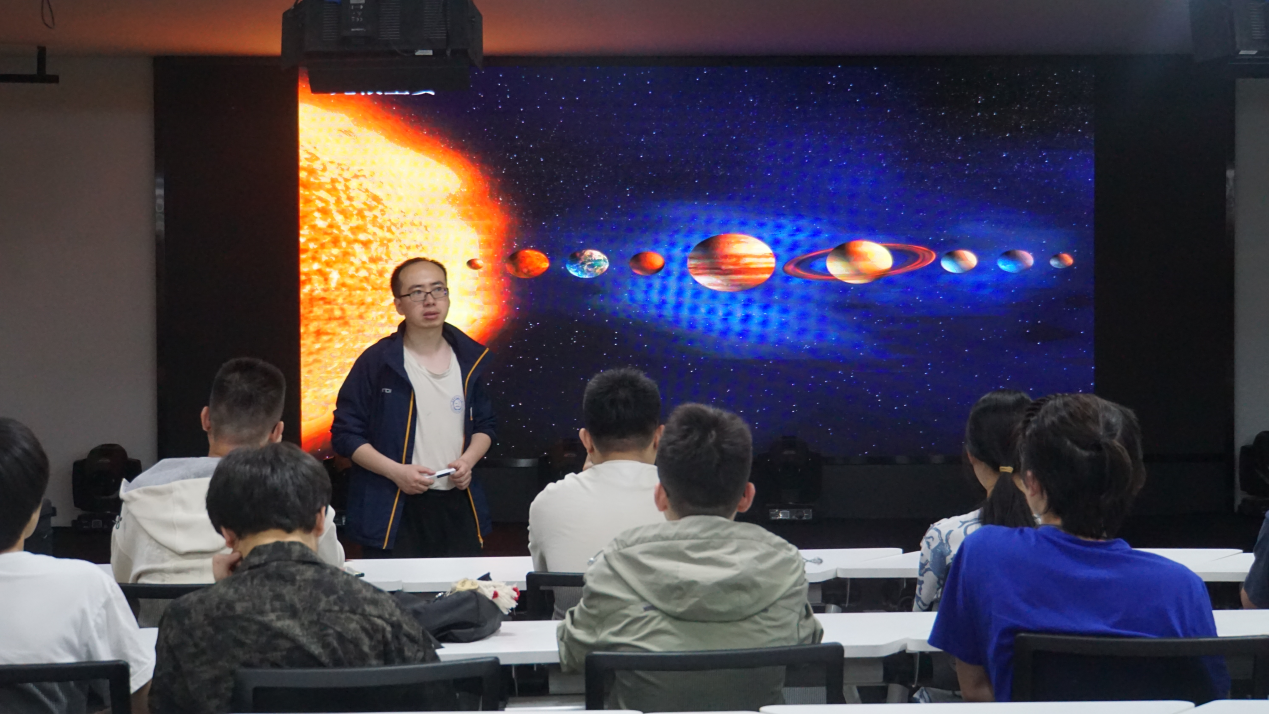林珂从日常自然现象和宇宙知识引出光、粒子的概念,生动形象地将课本中理论知识与现实体验相结合,激发同学们发现自然科学现象的好奇心,林珂富有感染力的讲述让同学们深深被物理科学的魅力所吸引。