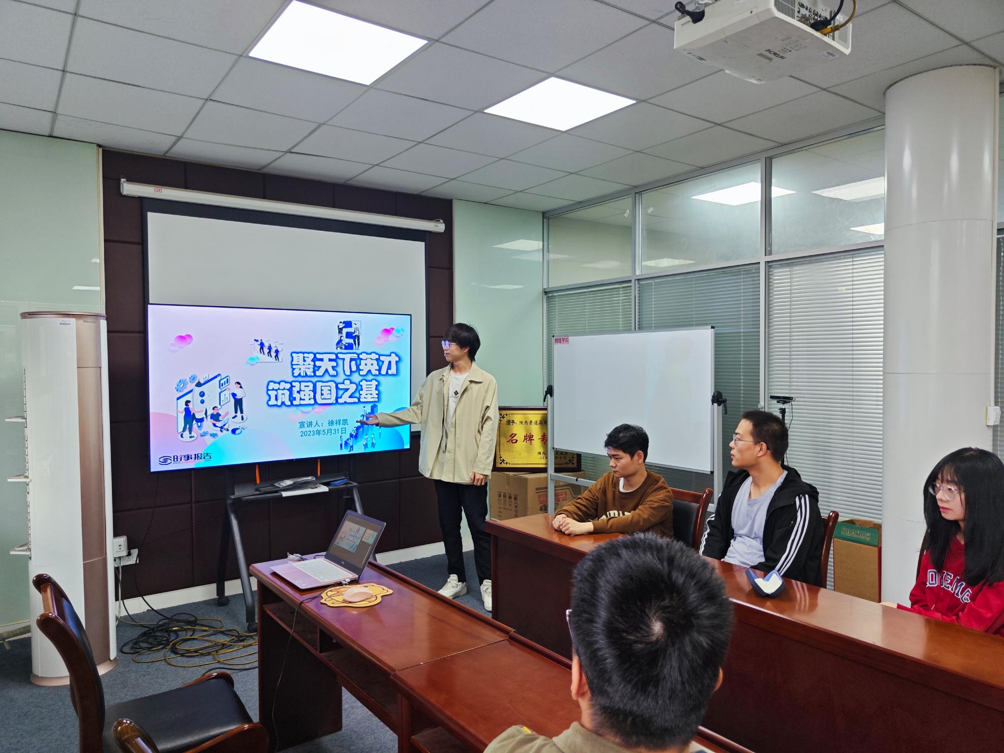 徐祥凯同学进行了主题为“聚天下英才,筑强国之基”的宣讲,从我国实施人才强国战略的现实考量、我国人才发展面临的新阶段、聚天下英才而用之的政策措施三个方面进行宣讲,引导员工深怀爱国之心、砥砺报国之志,成为为国所需的栋梁之材,肩负起时代赋予的使命与责任