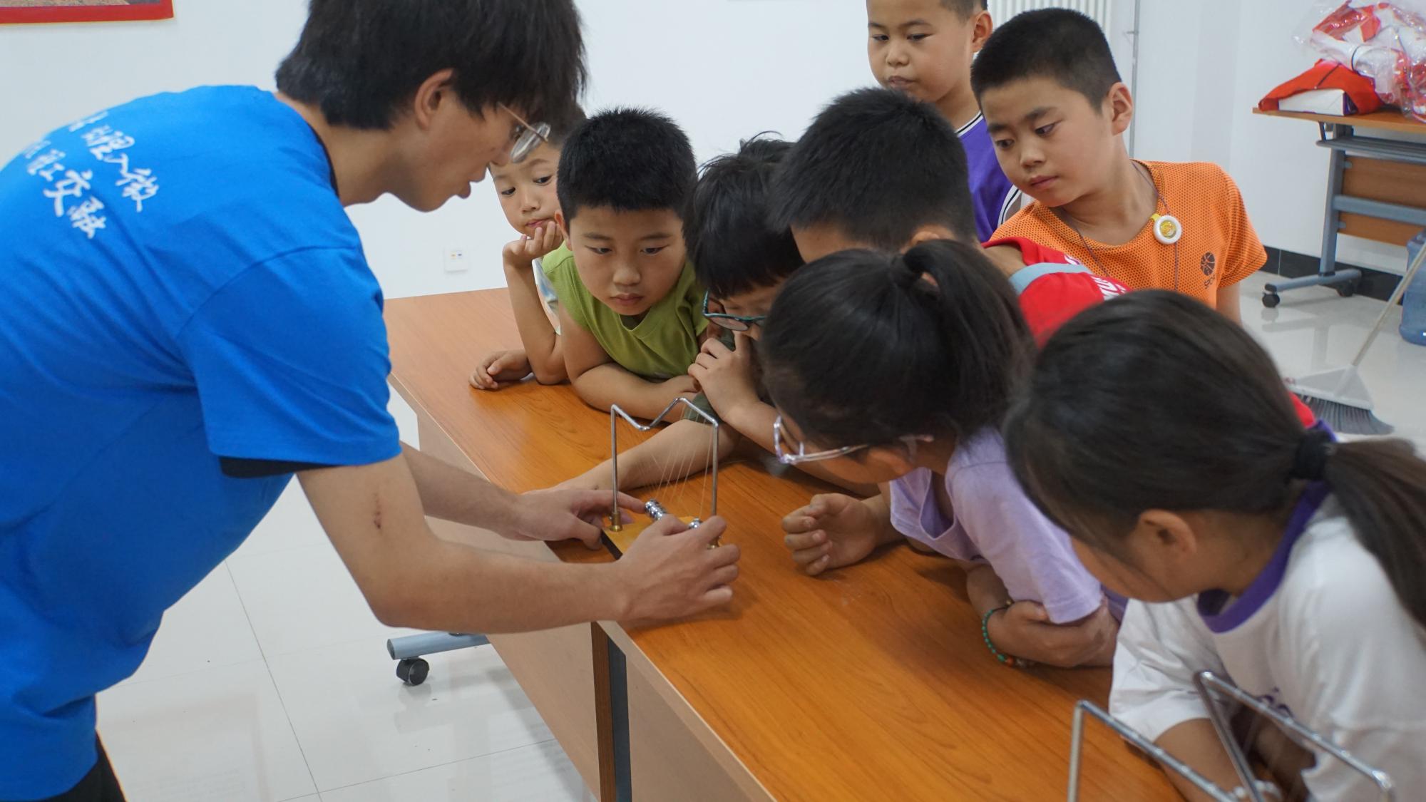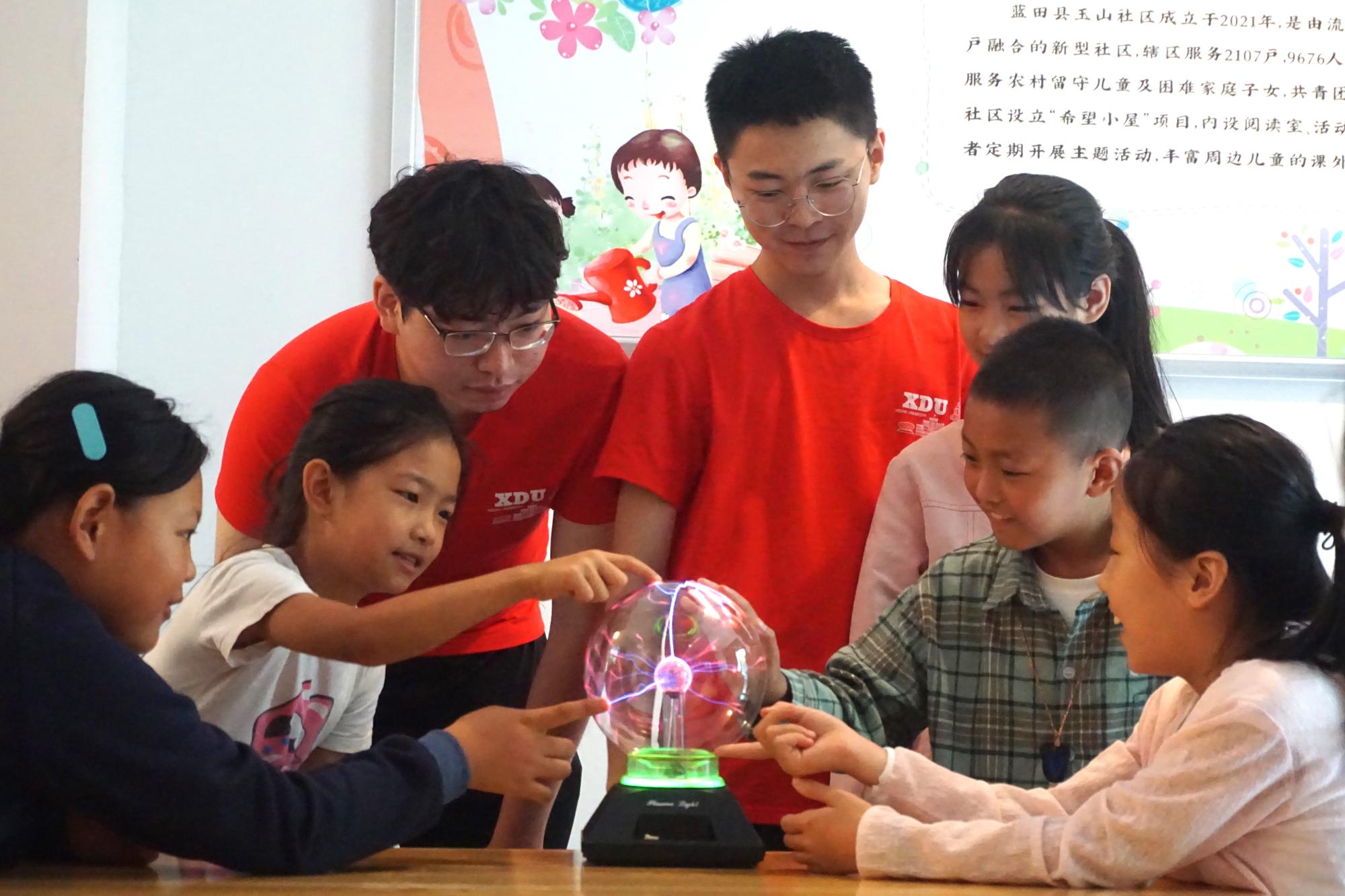 在西安市长安区兴隆鑫苑社区,队员张嘉轩以手工课的方式与孩子们互动,教授他们如何制作纸飞机;队员李超阳向同学们介绍剪纸的历史并带领孩子们学习剪纸;队员倪朔和余修锟讲解物理小实验。实践队队员们通过和孩子们一起绘画、做手工、唱歌、做游戏等,迅速打成一片,孩子们对实践队员产生了浓厚的感情。