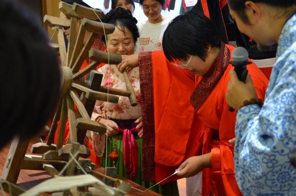 (通讯员 张楠 于天玮)中国有礼仪之大,故称夏;有服章之美,谓之华。为了推广中华传统服饰文化知识,使同学们深刻感受服饰文化蕴含的民族精神,9月15日下午,“点亮青春,礼敬中华——汉服手工织造体验”活动于南校区会议中心成功举办。本次活动由PA视讯主办,公司党委书记黄军荣、团委书记罗庆辉出席了活动。