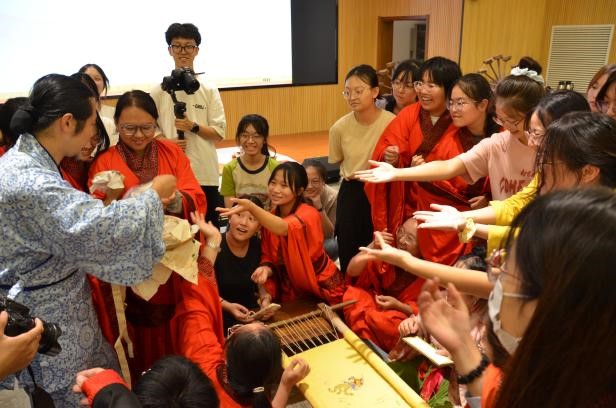 在本次活动中,公司特别邀请到华服非遗项目传承人姜姗秀、赵晁艺为同学们讲解汉服织造过程、带领同学们体验华服手工织造技艺,让同学们在实践过程中提升传统文化素养及对非物质文化遗产的传承保护意识。