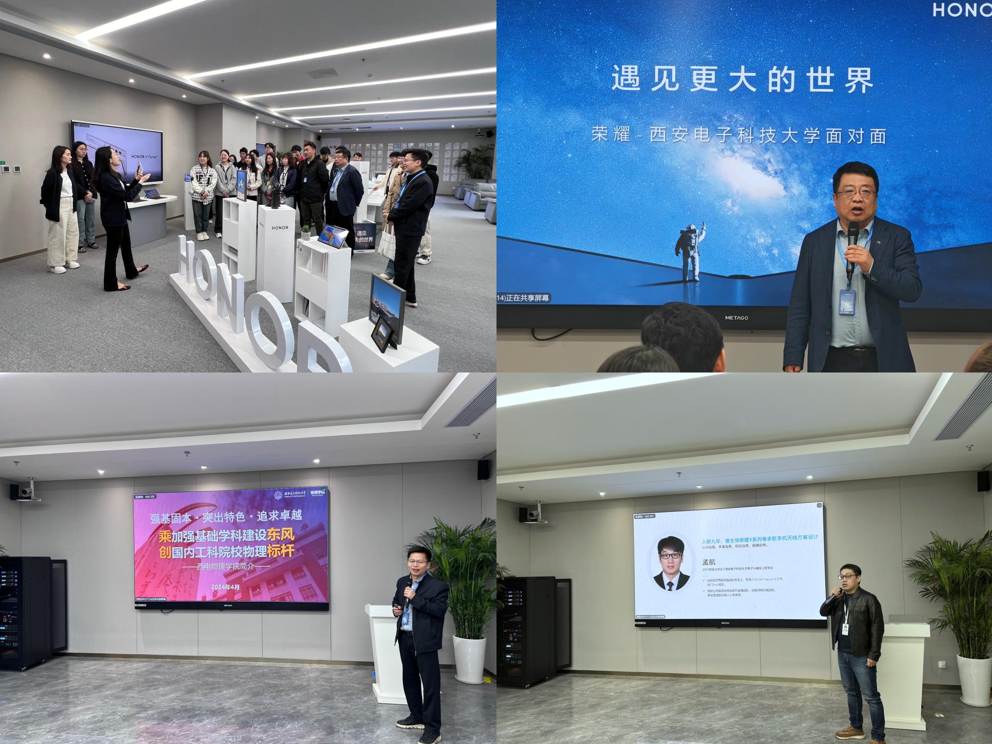 荣耀公司西部招聘平台总监卢英带领公司师生参观了企业文化展厅。无线性能二部部长逄金生对PA视讯一行表示欢迎,他详细介绍了荣耀公司的基本情况和主营业务,根据公司七大研发中心的布局介绍了不同研发基地的主要功能,并欢迎同学们积极加入荣耀。荣耀天线领域专家、西电2015届员工孟航分享了入职荣耀以来的个人发展和成长经历,从毕业生的角度分析了在荣耀工作的经验,希望学弟学妹们能够提升自身技术,在荣耀找到适合自己的岗位。