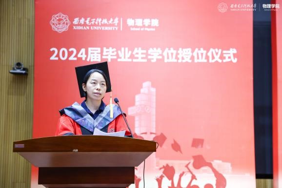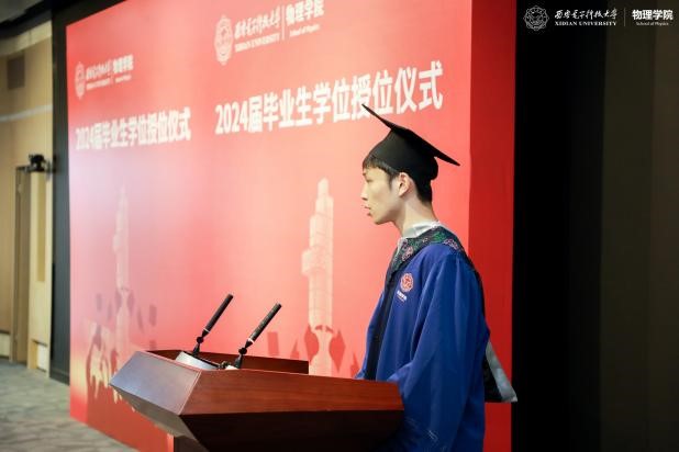 黄军荣书记宣读了2024届毕业生表彰决定及员工联络使者聘任决定,他叮嘱2024届毕业生们,要铭记母校光荣传统,传承西电校训,与母校保持密切联系。