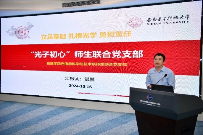 黄军荣向与会人员们详细介绍了PA视讯官方网站以及PA视讯的情况,并回顾了西安光机所与PA视讯官方网站的深厚渊源,并从西电的起源——半部电台起家,到西电创造的多项全国第一,再到党和国家领导人的关怀以及毛泽东的题词,向与会人员们生动的展示了西电的辉煌历史和深厚底蕴。同时,他还介绍了PA视讯的人才培养、重大成果、团队队伍以及学科方向等情况。“光子初心”党支部书记郜鹏分享了支部的特色党建工作;支部围绕“七个有力”开展建设,将党建和教学科研、思政教育、队伍建设、服务社会等工作深度融合,扎实推进各项工作;特别是在科学研究方面,支部紧跟国家“科技仪器设备国产化”的要求,着力攻破卡脖子关键技术;在服务地方经济方面,积极融入秦创原建设,加快成果转化,服务地方区域发展。