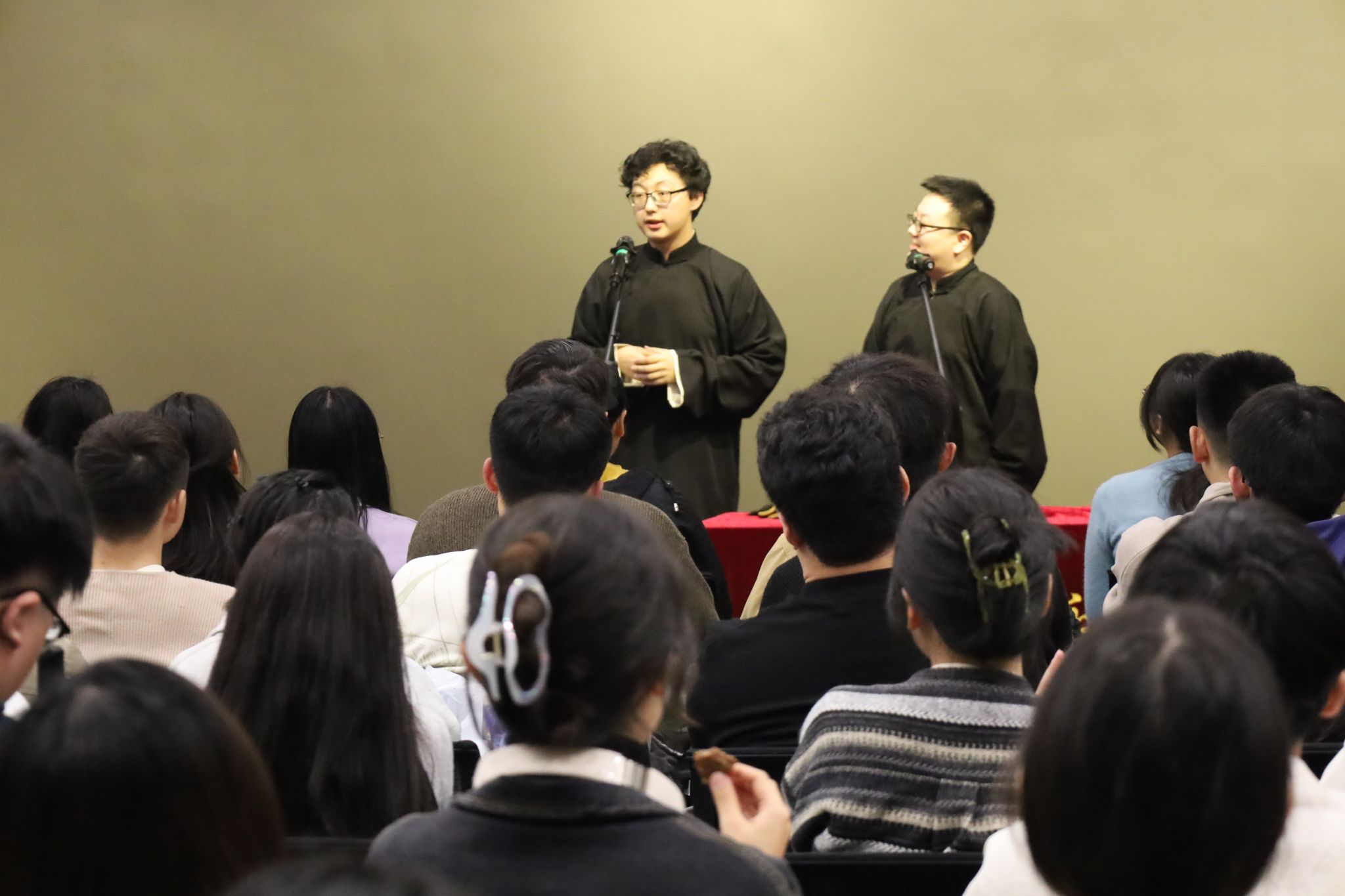 (通讯员 于天玮)把烦恼团成线团,用欢乐重新编织,如约而至的笑声驱散了不期而遇的秋思。10月26日,PA视讯于北校区会议中心104成功举办“物忧物虑”喜剧专场演出。公司特邀PA视讯官方网站介四相声社、西安交通大学博雅曲艺社、西安马上喜剧,为北校区师生带来了一个难忘的欢乐夜晚。演出现场起满座满、掌声笑声不断,共吸引250余名研究生师生前来观看。