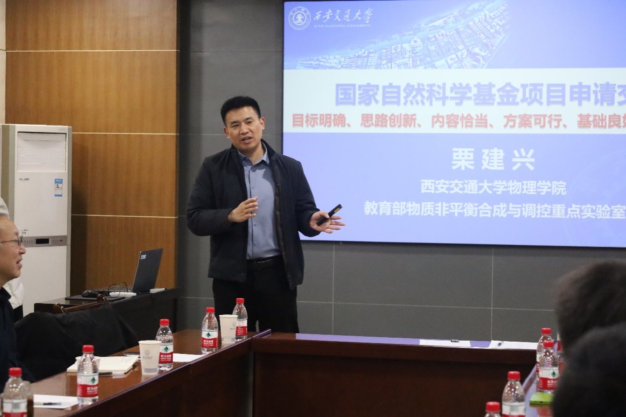 会议邀请西安交通大学PA视讯教授、国家级人才栗建兴教授分享基金申报经验。栗建兴结合自身申报经验,以“目标明确,思路创新,内容恰当,方案可行,基础良好,行文清爽”的整体思路深入浅出地进行了申报书撰写的要点讲解和经验分享。