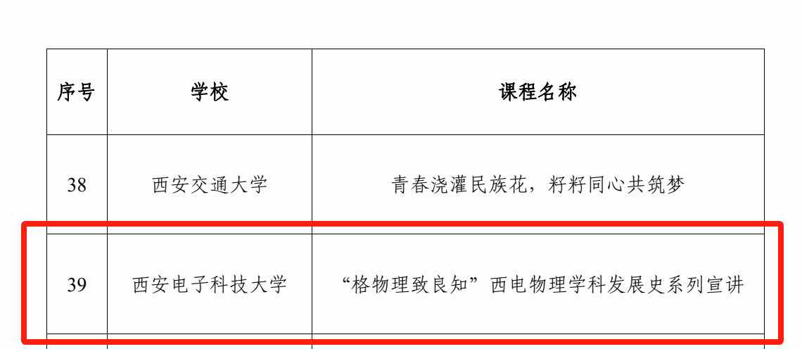 《“格物理致良知”西电物理学科发展史系列宣讲》获批全国高校青年宣讲联盟精品课程