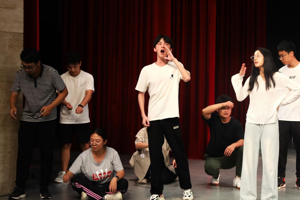 排练伊始,演员们以饱满的精神状态迎接每日的排练挑战。虽然许多同学首次接触话剧表演,但秉持严肃认真的态度,通过练习发音、绕口令、诗朗诵和形体展示等内容虚心学习表演基本功,反复打磨台词与人物表演细节。西安话剧院余燕妮导演通过游戏互动与理论讲解相结合的方式指导排练,帮助同学们放松身心、排除杂念,引导大家以自然真挚的状态融入情境,让角色精神世界更显真实丰满。余燕妮谈到:“演员的感受力训练是打好基本功的关键——真实细腻的人物和事件感受力,正是演员塑造人物、传递情感的核心‘内功’”。