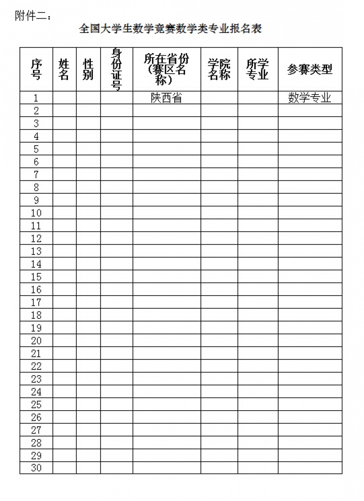 附件一:全国老员工数学竞赛非数学类专业报名表